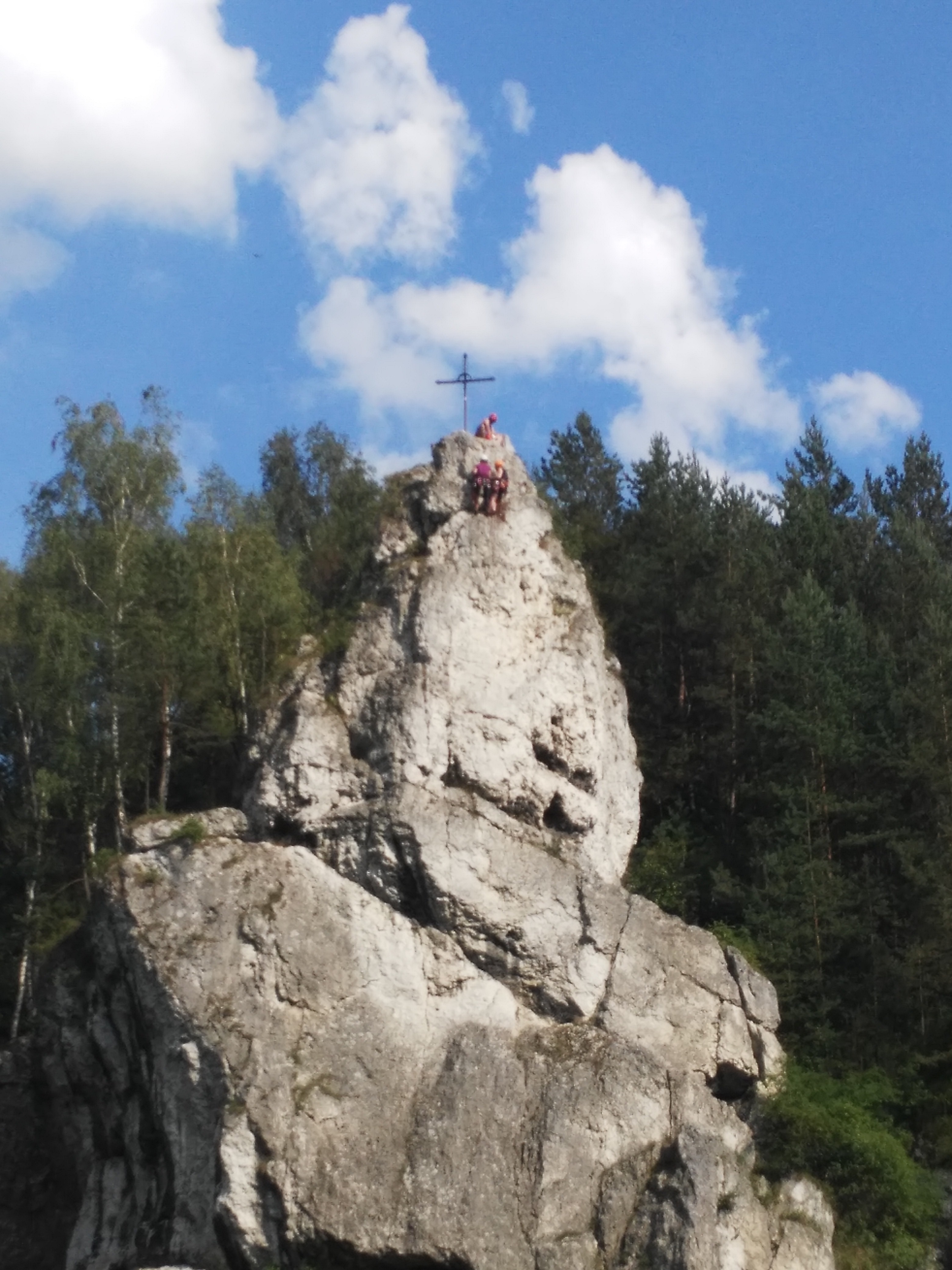 On Tuesday, we again went to the crags nearby and practised everything that we had learnt so far. I began to feel more confident. Things were becoming easier, too easy perhaps… I could sense that a test was yet to come and I was right. The challenge came the following day. The crags that Kuba led us to didn’t seem too difficult. Weronika went first and had a moment of a struggle but from the ground, I didn’t really see why. I did see as soon as I passed the second bolt. It was a hot day and we still didn’t have enough chalk. I had a good step under my left foot and a good hold for my left hand, a very slippery step for my right toe (the toe not the foot!) and a similarly bad hold for two or maybe three of my right fingers. I was perhaps halfway between the bolts, so on a bit of a loose rope and I needed to push myself up on that right toe so my left hand could reach the next hold. You might need to do a bit of hard work imagining this (I wish I could draw!). Breaking those moves into such details has no training value or I should rather say no climbing training value. There is, however, a life learning for me. First, let me tell you what happened. I obviously didn’t trust that I could push my body from that tiny toe step far enough to get to the next hold with the left hand, so I was holding onto the good hold and thinking about my next move. Anyone who has ever tried climbing knows that you can hold like this only for a short time and you either make a move or you are done. Of course, I was analysing for far too long. I should have either taken a step or two down to the last bolt and ask my belayer for a rest or make a move up. I kept holding. You can guess – a moment later there was a shout ‘falling!’. You have to warn your belayer if you have enough time. Though, I suppose that by that time Weronika was expecting this anyway. The fall, this time not a training one, wasn’t bad. I expected it to be much worse. I had a short rest and started climbing again and repeated the whole story again. The second fall was worse and I hit my ankle against the rock. Nothing dramatic, I just registered that it happened, that’s all. I had another rest and thought to myself that I either had to give up, which wasn’t really an option, or make a quick move and get to the next hold without thinking. It worked and I finished the route without much trouble.