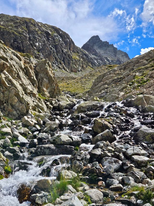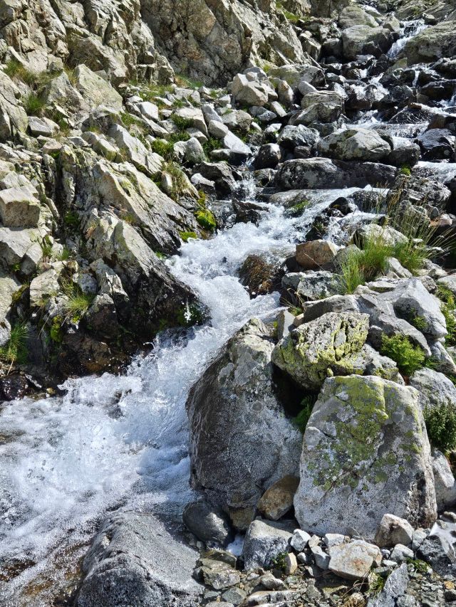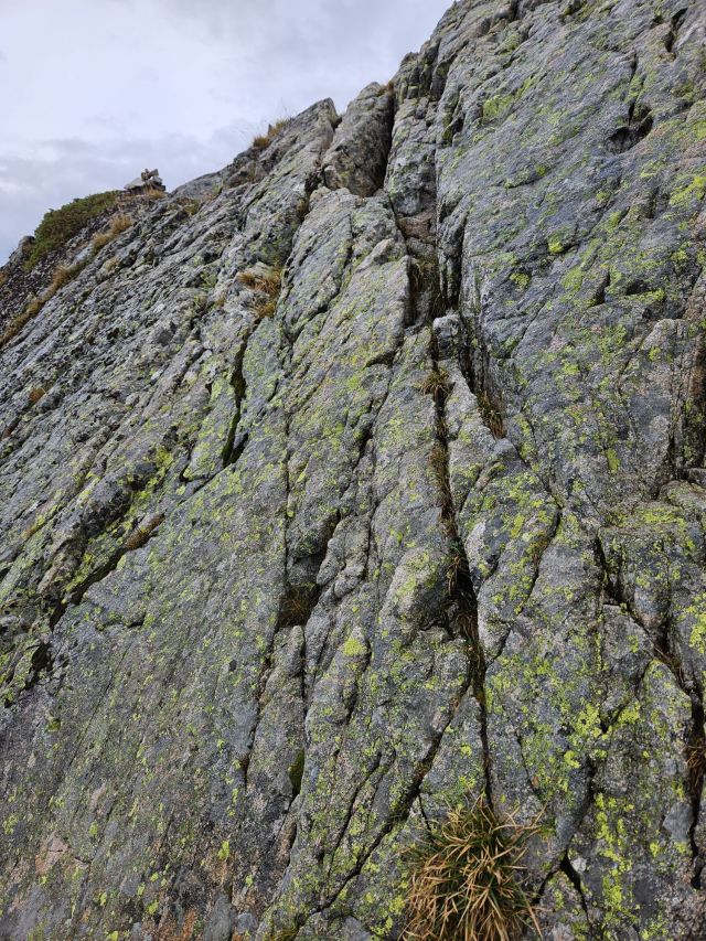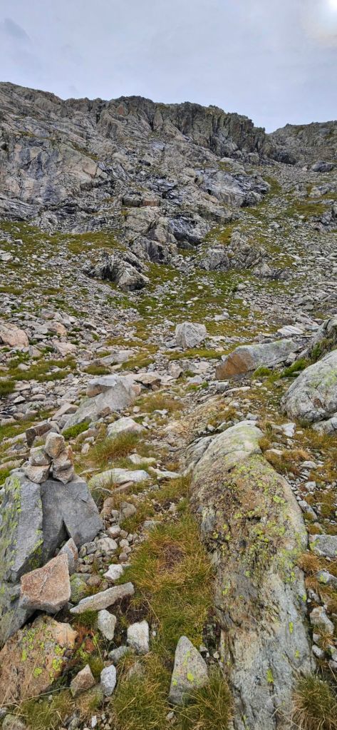 As I get closer to the pass, I’m simply walking in water (I was going to say on water, but I’m not sure that my faith is strong enough for that😉) – either on a flooded grassy path or rocks. Further up the landscape becomes incredibly dramatic and I don’t think that it’s just the weather. The rock formation is very different. Though, the word ‘formation’ seems too organised in this case.