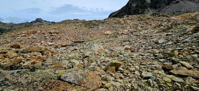 When I got to the French side of Marcadau, now aka Mordor, I had Matt Maher singing in my ears ‘If you’re still alive and breathing, praise the Lord…’. I laughed… Someone definitely has a sense of humour. Of course, I’m praising you whatever the weather and whatever happens. It wasn’t an empty praise, either. Even though I was so cold, I felt great. It’s like I crossed the line of something and I’m not quite sure what it is. It’s like it doesn’t matter how cold I felt, how wet…. I was going to say how tired, but I actually didn’t feel tired. I was weirdly energised. This Mordor around me was oddly beautiful. The rocks were stripped in pretty colours. I picked a small stone that mesmerised me with its colours. I put it in my backpack. Silly, considering the fact that I was trying to make this pack lighter.