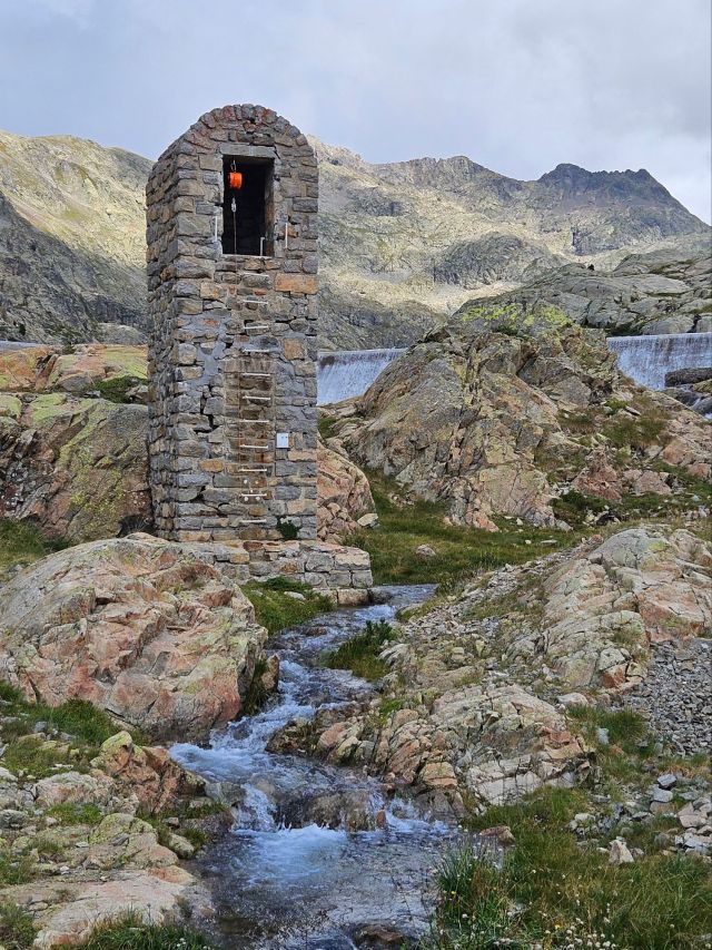 The Marcadau Valley appeared in front of me and there was suddenly a lot of green around. Quite different from the Spanish side. When the clouds lifted a little, I could see another flock of sheep on the slope in front of me. The rain got lighter, but the streams of water were everywhere and I had to really watch where I was going. I thought that it would be easier after I get to the valley. Well, I was wrong. That beautiful grass was soaked with water, so whether I walked on the path or not, it didn’t really matter – I walked in water. I felt warmer, but crossing all those streams started to frustrate me. However, as they started to get wider and wider, I saw something that made me very happy… Here one definitely needs a bridge 🙂